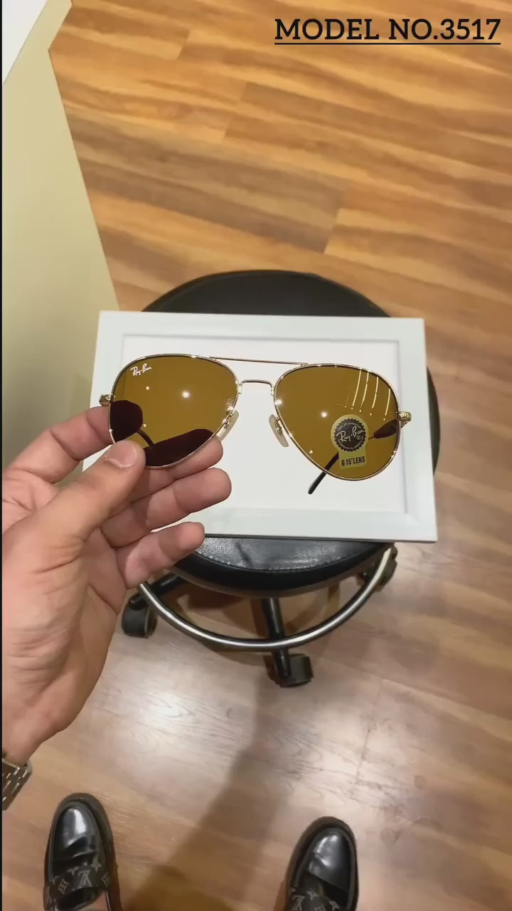 RAY-BAN Brown & Gold ( 3517 ) New 26-mm Men's Sunglasses.